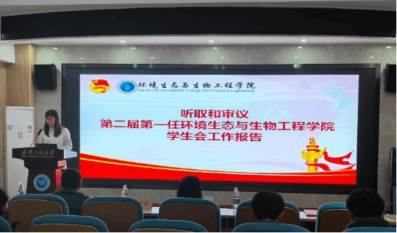 汪杨代表学生会向大会作《挥洒青春之笔,共绘环生未来,推动构建创新服务型学生会,深入学习贯彻党二十大精神》工作报告,报告全面总结了上一学年中学生会工作所取得的成绩和经验,对前期工作中存在的问题进行了汇报。