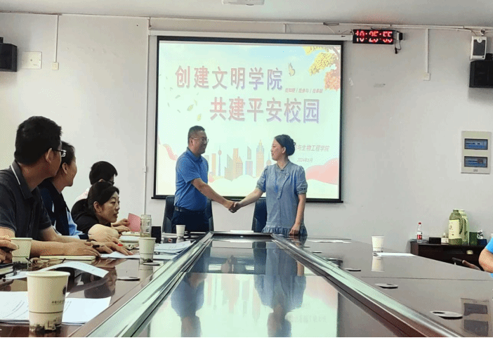 随后学院党委书记孔海霞、副院长赵喜红分别与各支部、各部门及重点防范部门负责人代表签订《学院平安建设责任书》