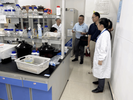 检查组一行对学院大化工1号楼实验室逐一进行仔细检查,认真核对危化品出入库记录本,查看危化品存放情况,检查危险废弃物存放区域及其规范性等问题,针对发现的安全隐患,对当事人及时进行知识普及并提供改进意见。检查发现目前科研实验室主要存在的问题是部分研一的学生对本实验室的安全等级、主要危险源不是很了解,要求各实验室负责人提高认识,在炎热的暑期做好安全教育工作,严格按照学校的相关规定落实好实验室的安全工作。